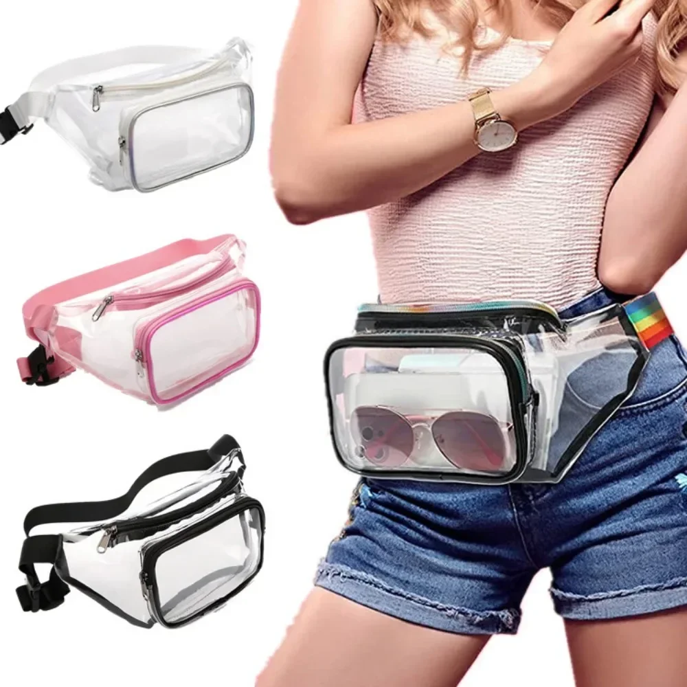 PVC Women Waist Fanny Pack Belt Bag Hip Bum Bag Clear Transparent Chest Pouch