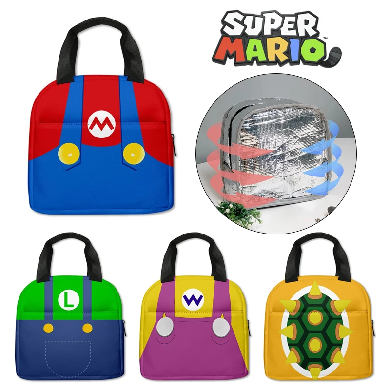3D Super Mario Bros Lunch Bags Portable Thermal Insulation Lunch Box Storage Bag Anime Children School Lunch Box Picnic Tote Bag