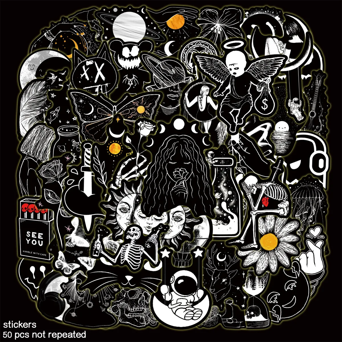 50Pcs Black Graffiti Stickers Water Bottle Laptop Phone Bicycle Luggage Case Skateboard Children Adult Sticker