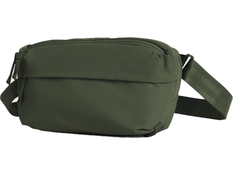 Moment 4L Everything Sling Olive 106-211. Wear it on either shoulder no adjustments needed or switch between front and back. Expand it to fit more or compress it for a sleek look. A removable padded divider quickly transforms it from everyday carry...  Read more