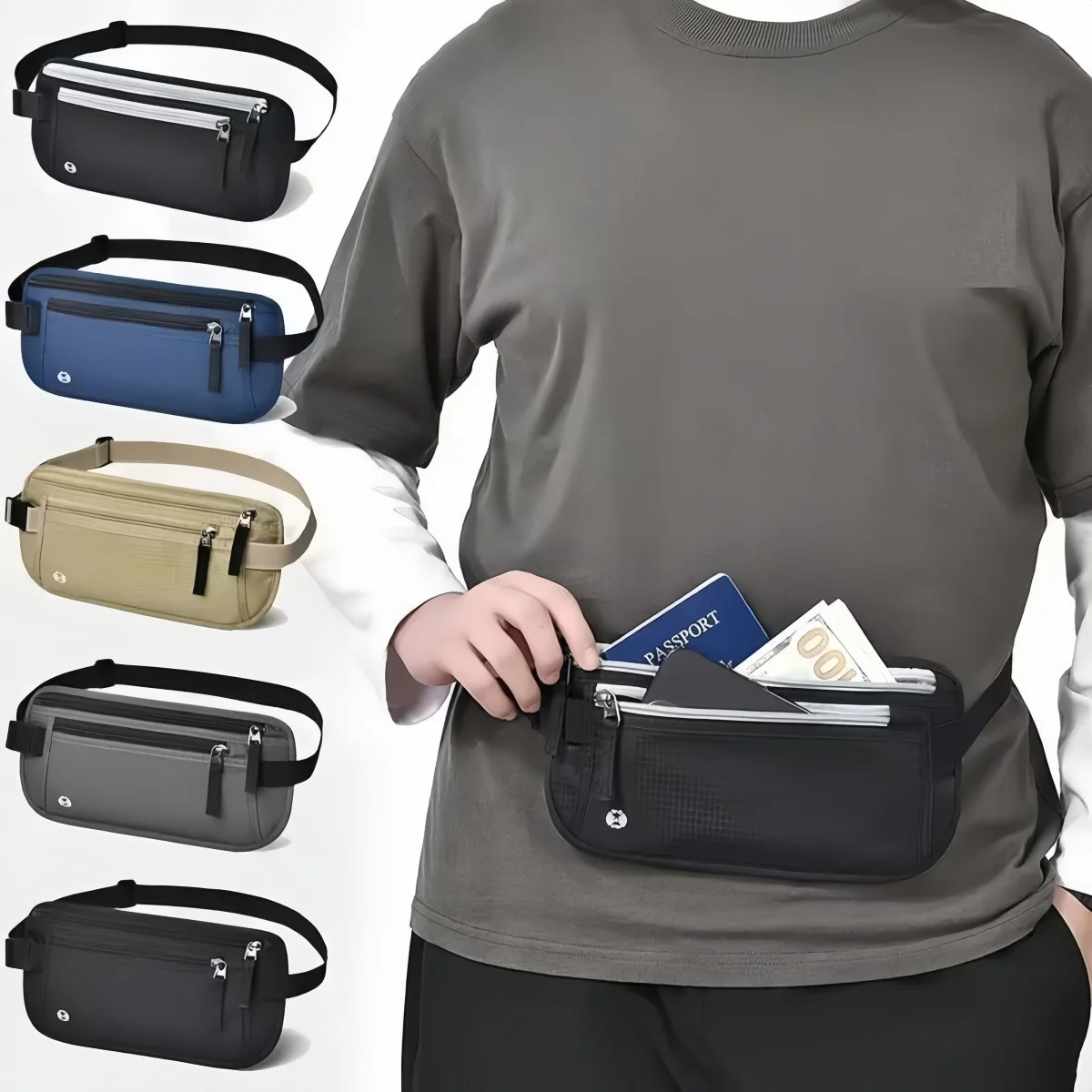 RFID Anti-Theft Brush Close-Fitting Waist Bag Passport And Document Bag Multi-Functional Portable Water-Resistant Storage Bag  Read more
