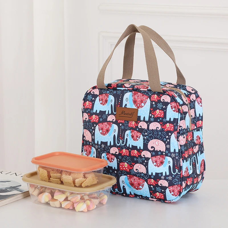 Cute Floral Printed Food Handbags Portable Thermal Lunch Bag Durable Waterproof Office Cooler Ice Insulated Case Camping Ins Bag