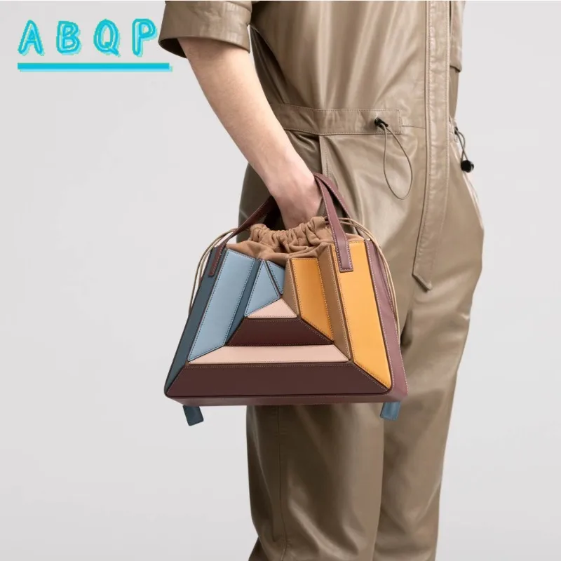 Geometric Multicolor Handbag Modern Triangular Color Block Design Shoulder Bag Casual Formal Events Trendy Handheld Purse