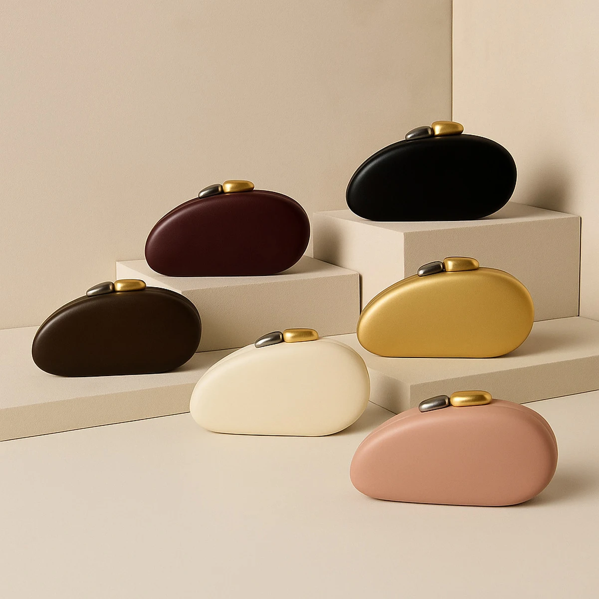 Designer Shell Shape Clutch Bag with Metallic Closure Chain Dinner Purse Women Evening Party Leather Shoulder Crossbody Handbag