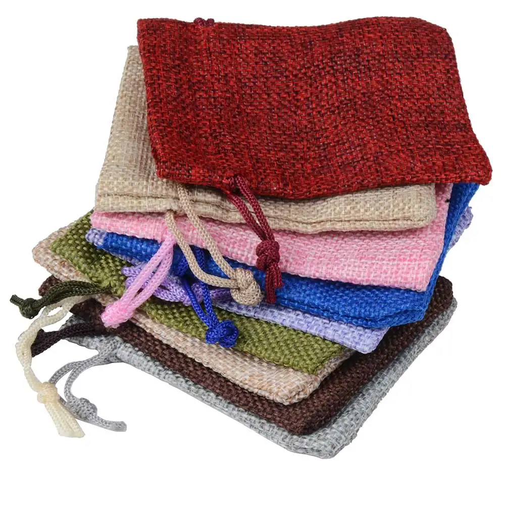10pcs 7x9cm Natural Linen Flax Bag Drawstring Pouch Jewelry Packaging Wedding Gift Bag
