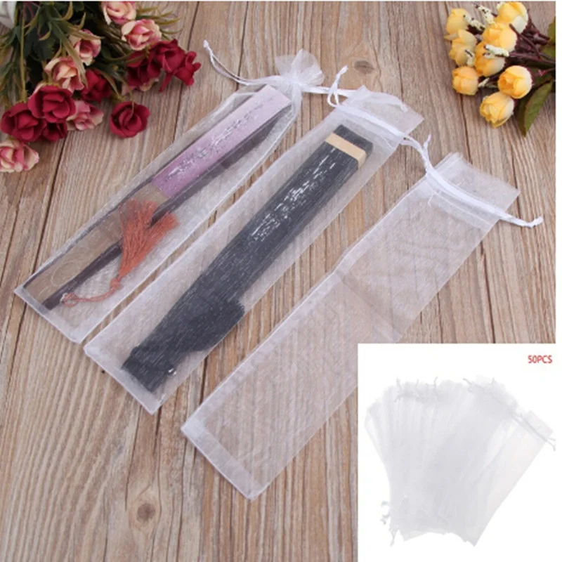 50Pcs Drawstring Organza Bags Organza Drawstring Bags Pouch Handheld Fan Bag Organza Sack Pouch Drawstring Hand Fan Pouch