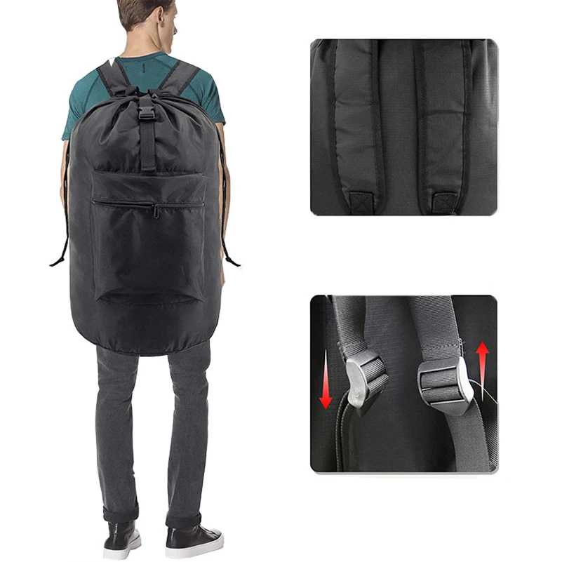 Backpack Laundry Bag with Pocket Laundry Hamper Bag with Drawstring Closure for College, Travel, Laundromat, Apartment
