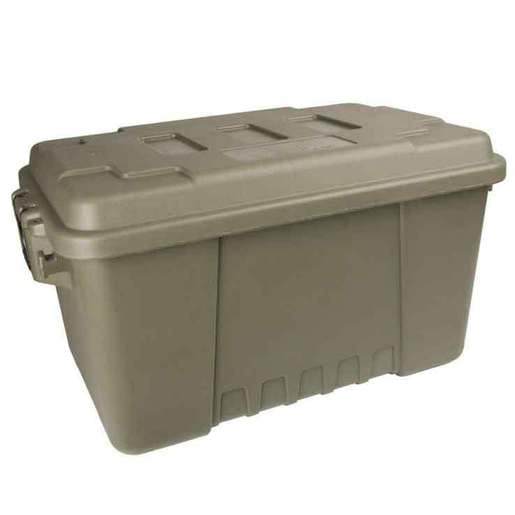 Plano 56qt HD Storage Tote - Grooves built into the top and bottom of the tote make stacking and storage a snap. Reinforced lids ensure that your boxes contents wont get crushed. Exterior dimensions: 24"x15"x13" Interior Dimensions: 20"x12"x11.5"  Read more
