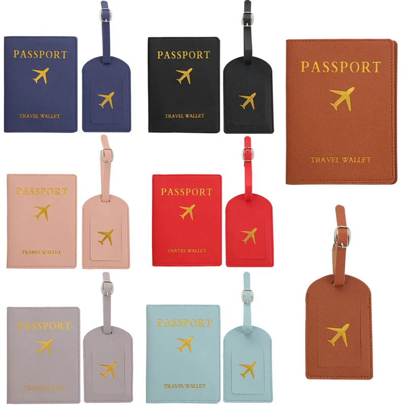 2Pcs/Set PU Travel Passport Cover Luggage Tag Suitcase Identifier Label Baggage Boarding Bag Tag Name ID Address Passport Holder