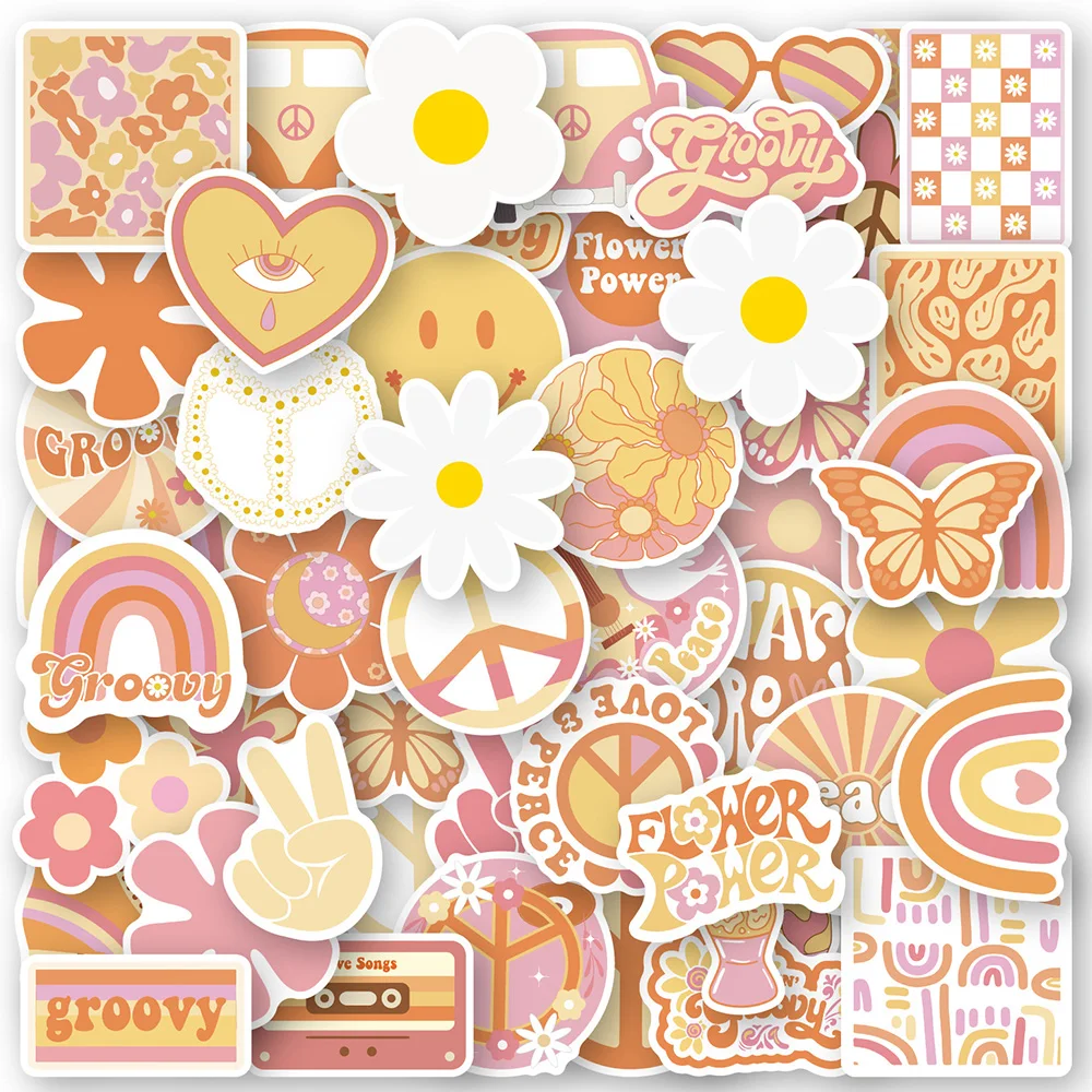 10/30/50/100pcs Retro Cartoon Cute Groovy Boho Hippie Graffiti Stickers Decal Laptop Phone Suitcase Waterproof Sticker Kid Toy