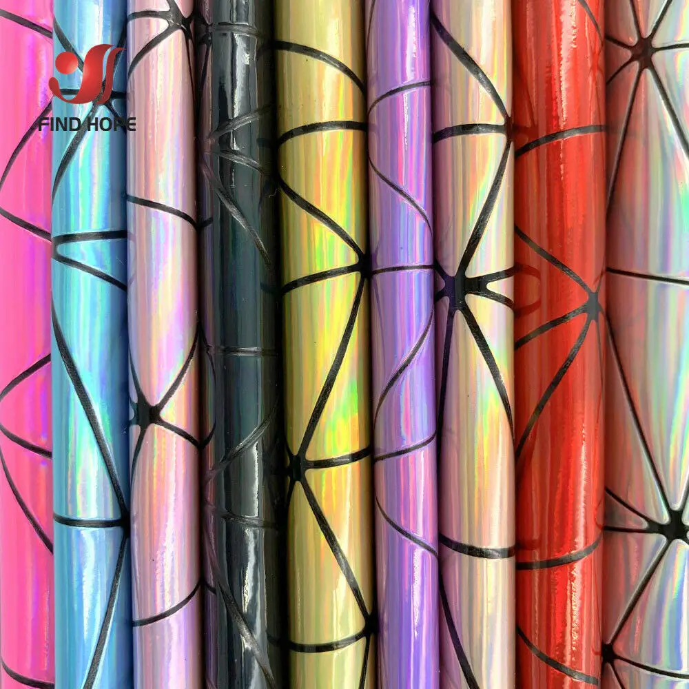50*120CM Iridescent Geometric Polygon Laser Hologram Rainbow PU Faux Leather Fabric Synthetic Bag Bow Craft DIY Clothing Sewing