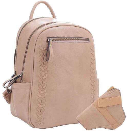 Jessie & James Madison Concealed Carry Backpack Purse - Taupe - The Madison Concealed Carry Backpack features a whipstitch details with multiple compartments and dual entry zipped concealed carry compartment in the back. Made of Faux Leather, easy...  Read more