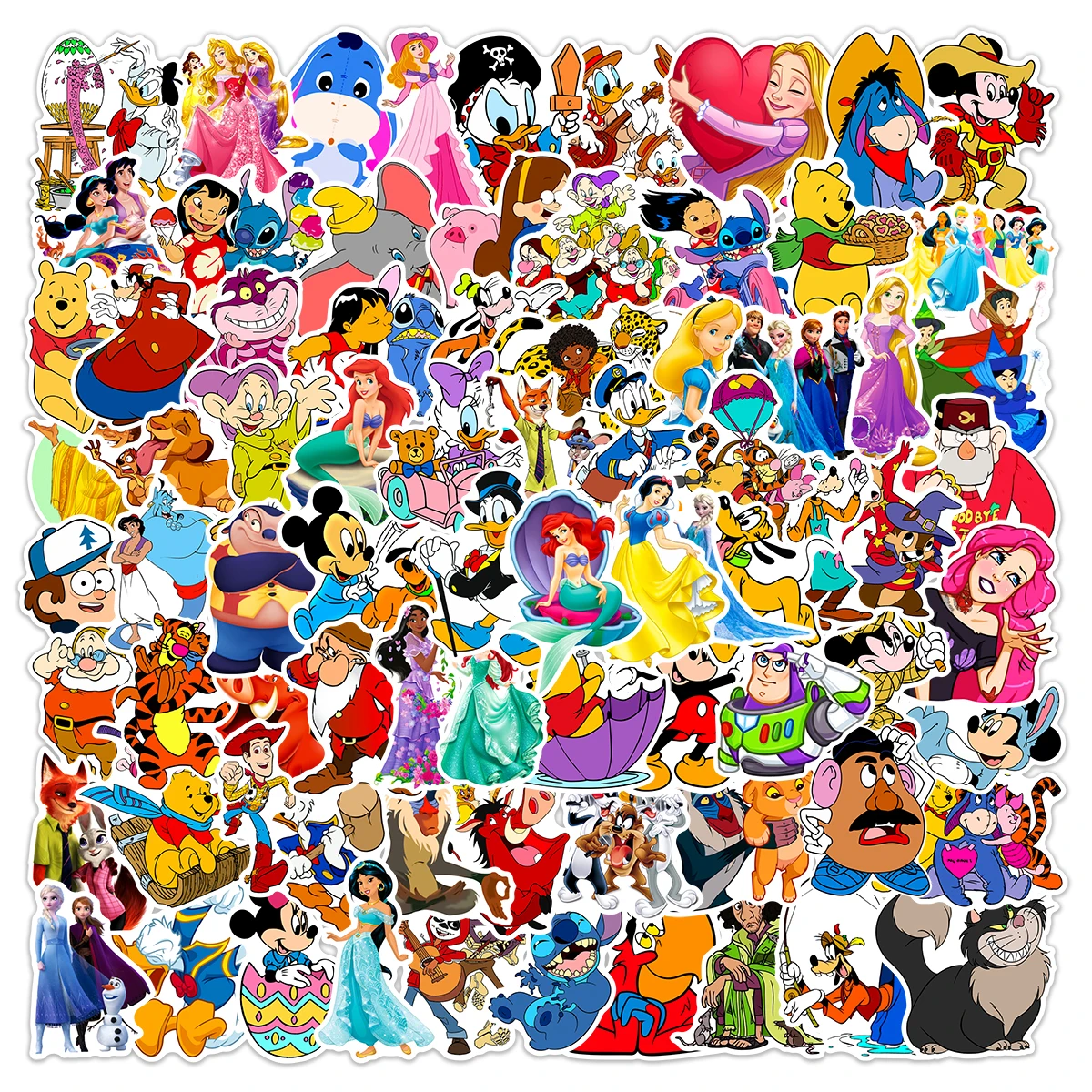50/100pcs Disney Mix Cartoon Cute Stitch Micky Princess Stickers Vinyl Laptop Luggage Skateboard Waterproof Girl Sticker