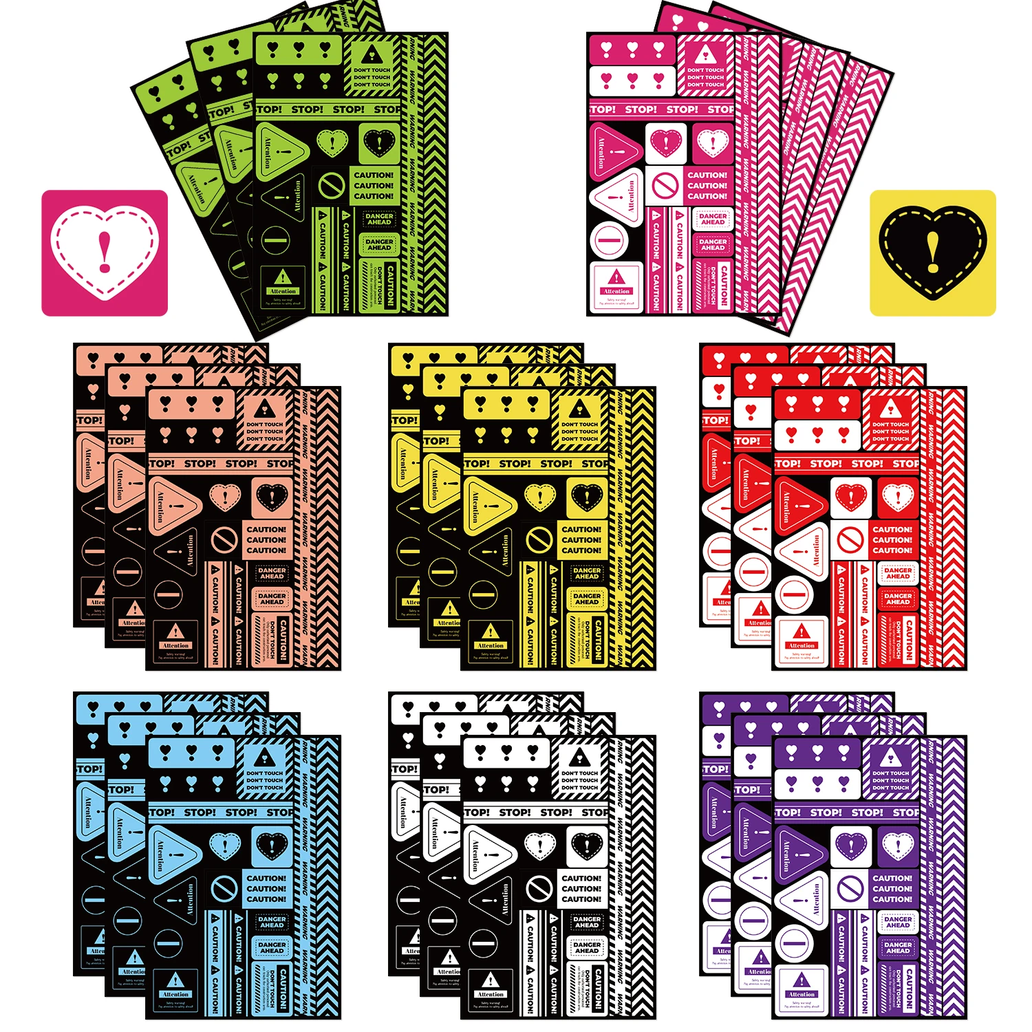8PCS Cute Cartoon Warning Line Creative Sticker DIY Luggage Laptop Guitar Phone Skateboard Vinyl Waterproof Graffiti Decals