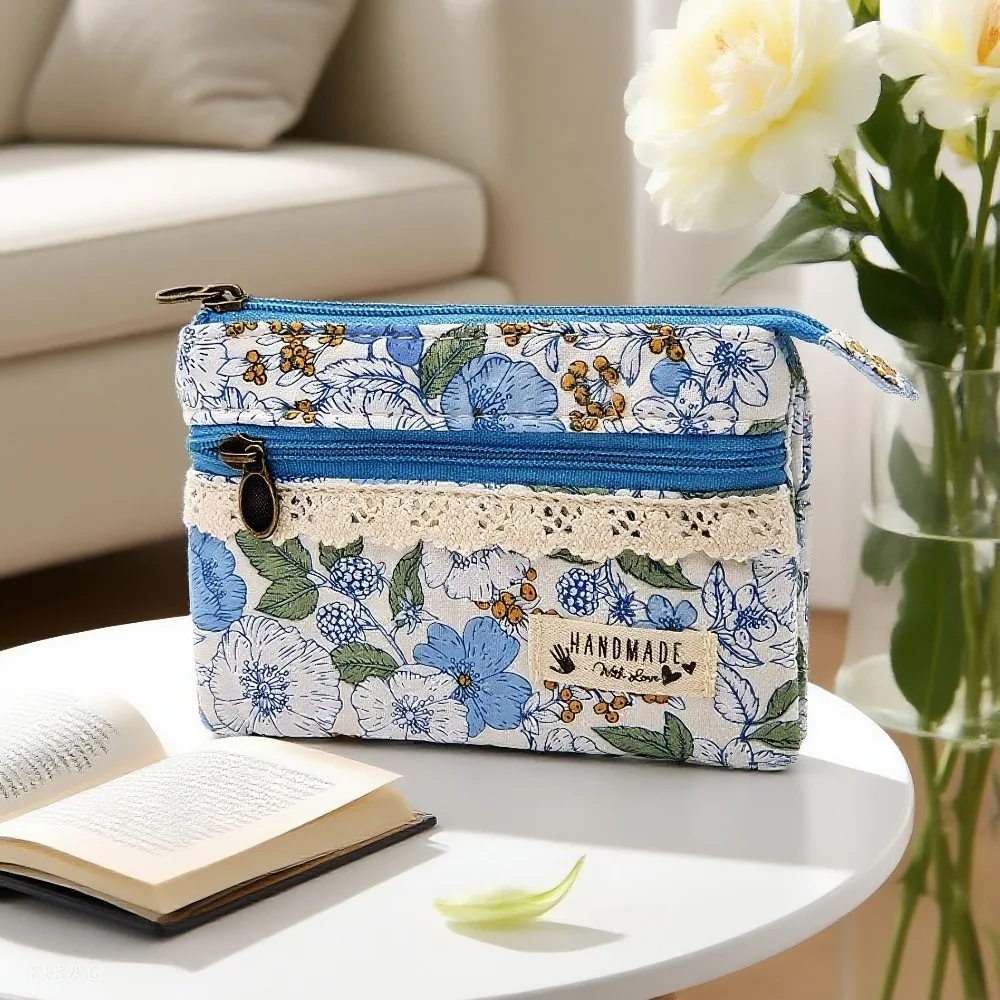Women Flower Coin Purse Retro Fashion Multi-layer Cotton Fabric Coin Purse Card Wallet Small Change Bag Hand Purses Pouch