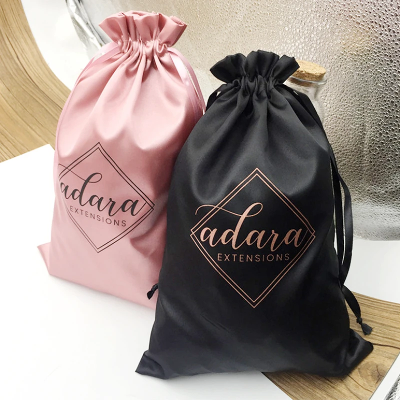 Custom Logo Satin Drawstring Bag Makeup Shoes Clothes Virgin Hair Extensions Wigs Packaging Bags Storage Christmas Wedding Candy