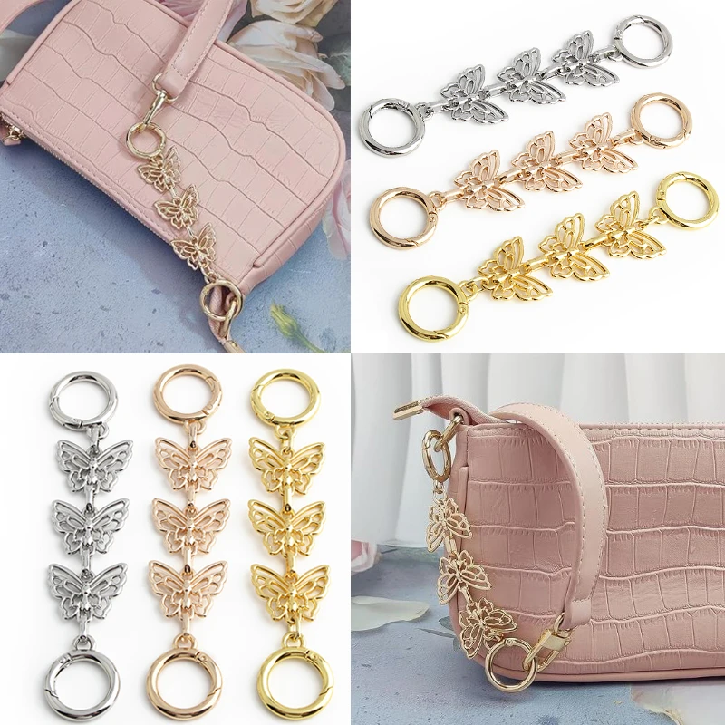 HOLIN Pink Butterfly Purse Chain Charm 26CM Gold Chain Bag Keychains Luxury Colgantes Para Bolsas Decorativos Tasche Charms