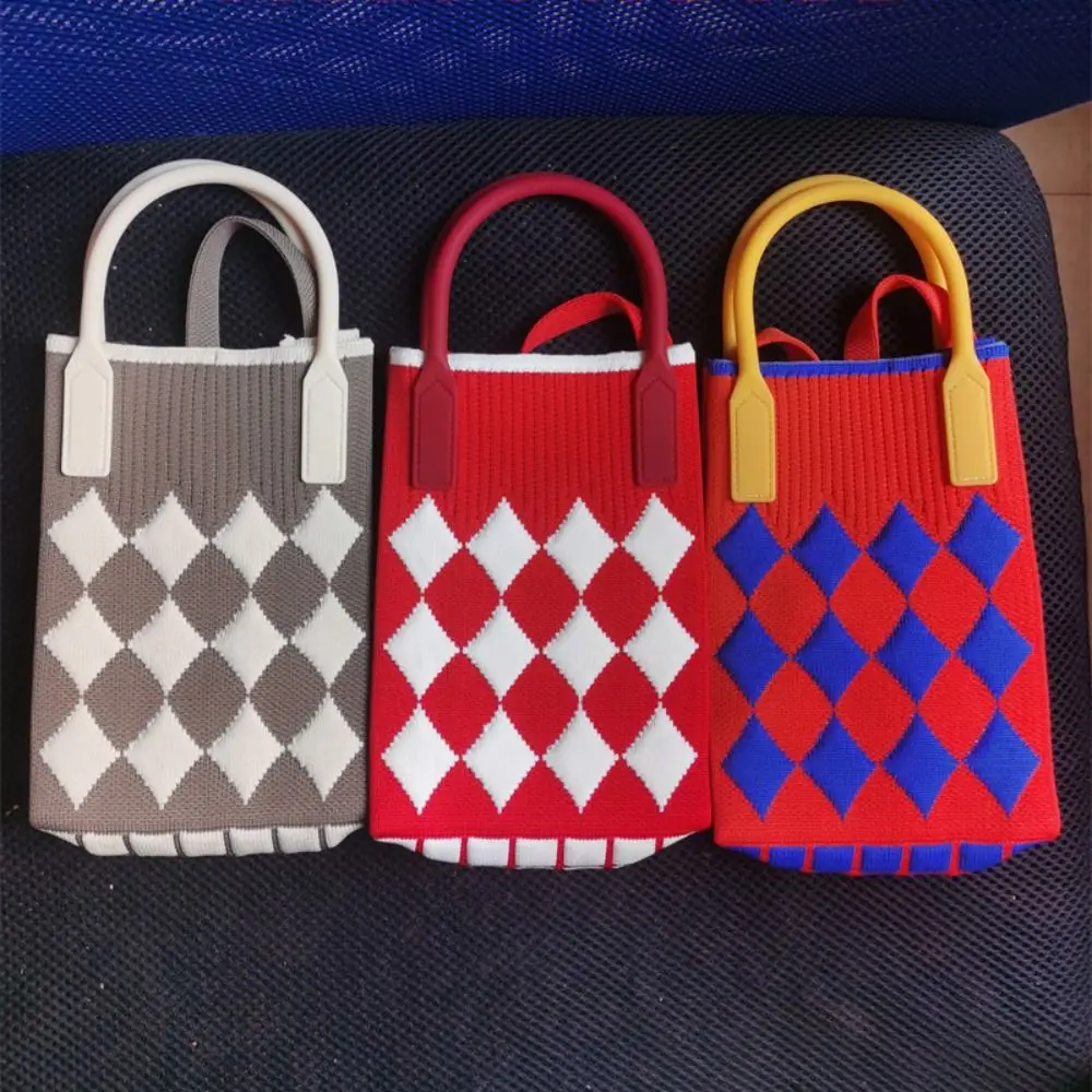 Fashion Geometric Pattern Women's Knitted Handbag Female Woven Shopper Purse Design Chain Shoulder Crossbody Bag