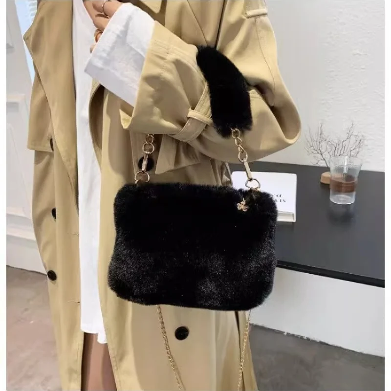 Plush Faux Fur Tote Bag for Women Winter Shoulder Bag Casual Fluffy Crossbody Bags Fashion Chain Tote Handbag Girls Soft Purse