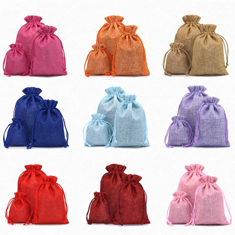 10pcs 7x9cm Natural Linen Flax Bag Drawstring Pouch Jewelry Packaging Wedding Gift Bag