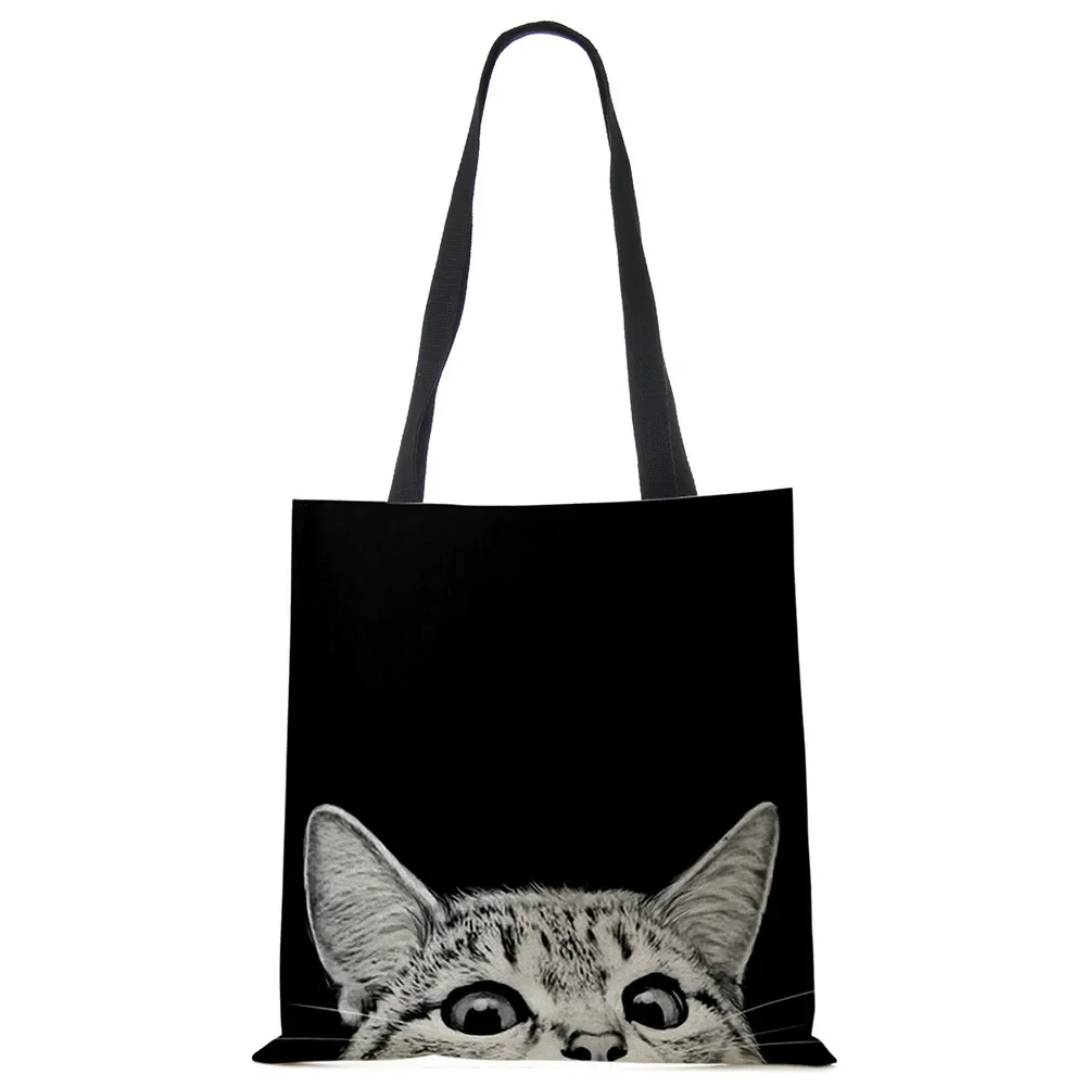 Designer Tote Bags Sumi Black Cat Printed Linen Fabric Eco Handbag Shopping Office Reusable Casual Shoulder Bag Travel Bag