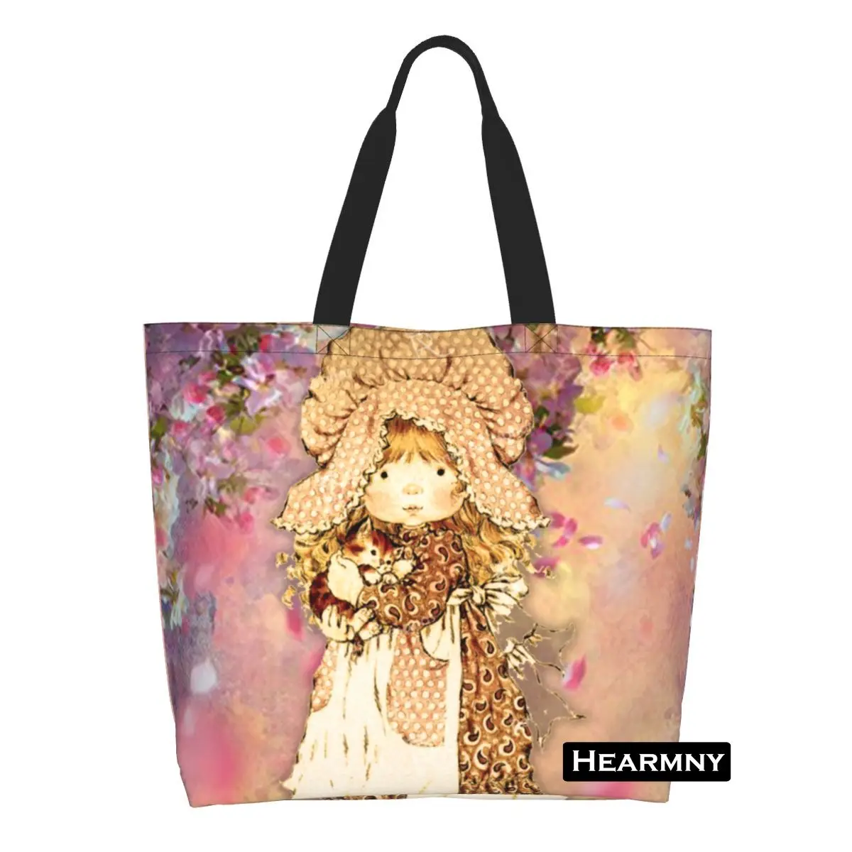 Recycling Cartoon Sarah Kay Shopping Bag Women Shoulder Linen Tote Bag Durable Kawaii Girl Grocery Shopper Bags  Read more