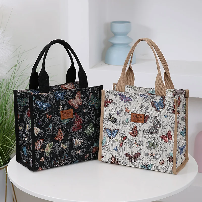 New knitted jacquard thickened fabric handbag, Mommy daily fashion portable work sundry storage bag, square bag, lunch box bag