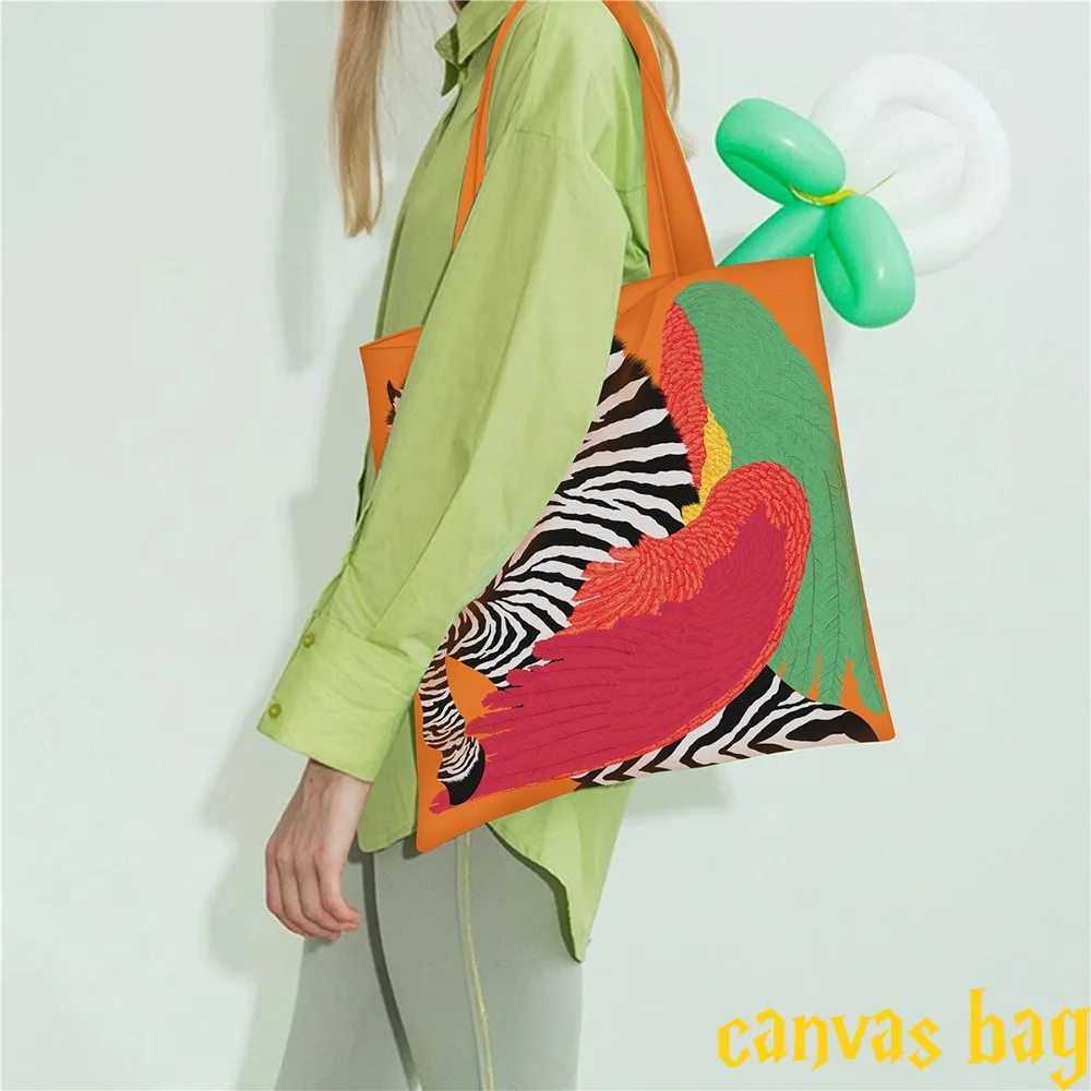 Fashion Multi-color Canvas Bag Women's Handheld Cloth Large Capacity Carrying Book Bag Shoulder Bag Commuter Work Shoulder Bag