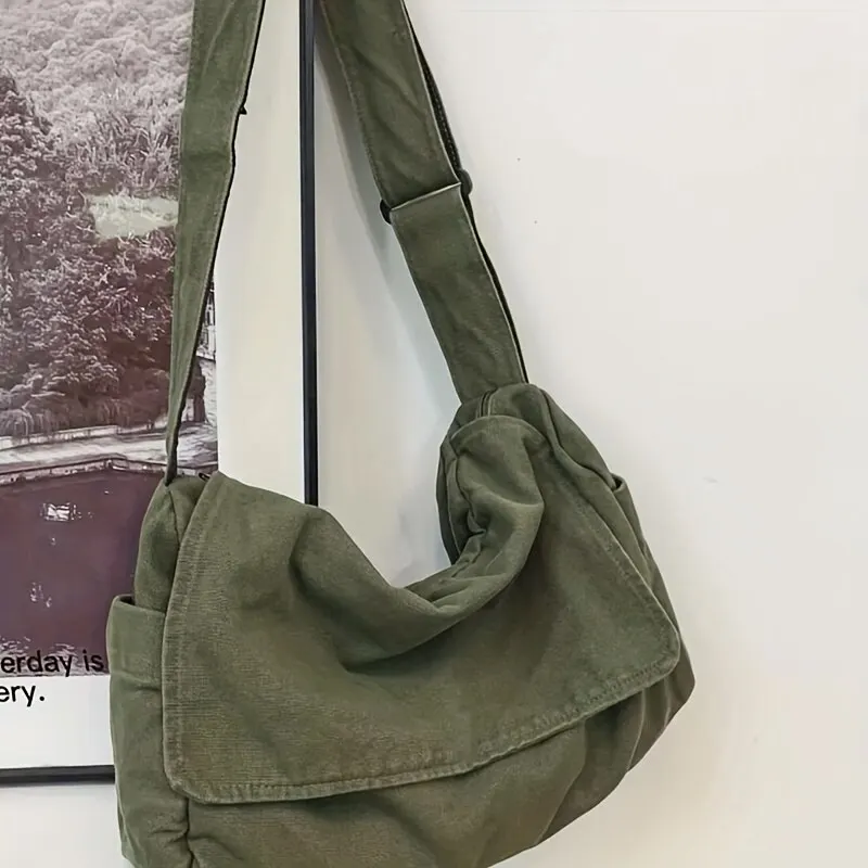 Large Capacity Canvas Shoulder Bags Solid Color Leisure Travel Bags for Women Harajuku Crossbody Handbags Female Messenger Bag