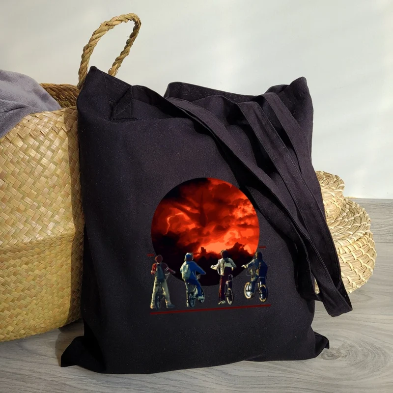 Eleven Cartoon Harajuku Fashion Canvas Bag Women Girls Simple Large Capacity Storage Handbag Tote Reusable Student Bookbag Black