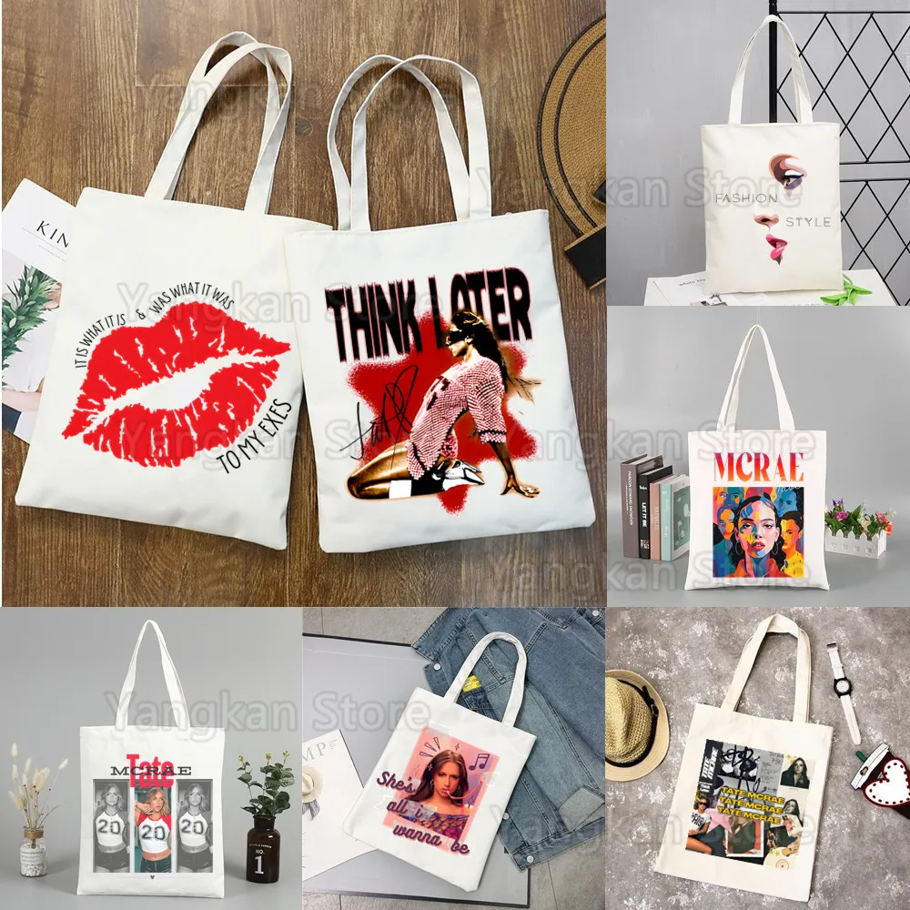 Tate McRae Miss Possessive Canvas Shoulder Tote Bag for Women Handbags Eco Reusable Shopping Bag Vintage Fashion Ulzzang Bags