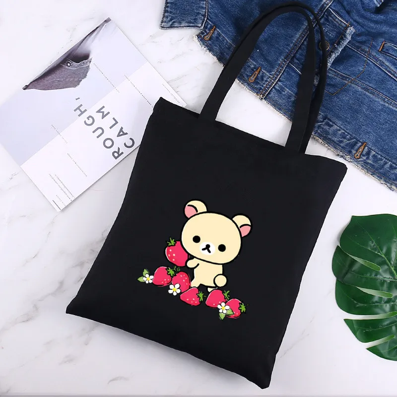 Commuter Bag Shoulder Bag Harajuku Woman Bag Casual Tote Bag Shopping Handbag Rilakkuma Pattern Printed Canvas Bag Black
