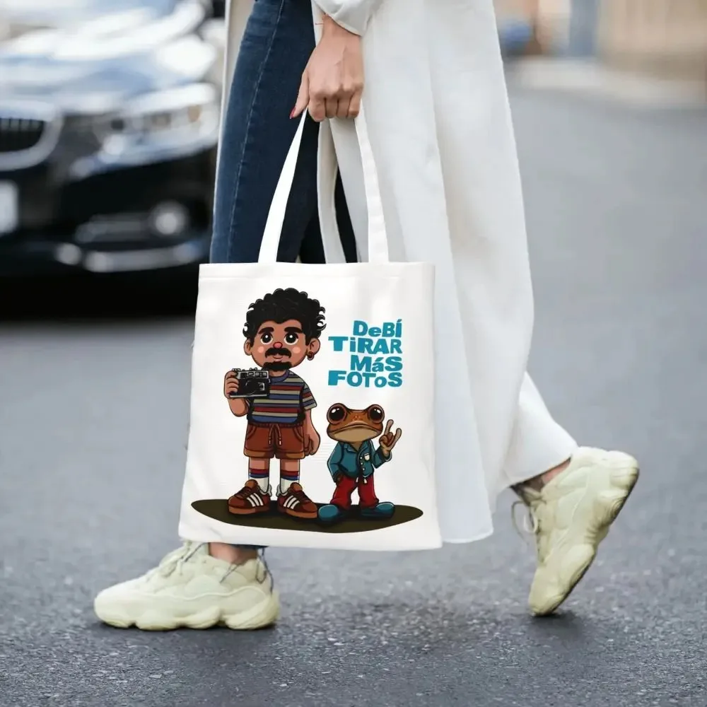 Bad Bunny DTMF Cartoon Canvas Tote Bag Aesthetic Unique Design Casual Bags for Women Men Shoulder Bag Cartoon Handbag