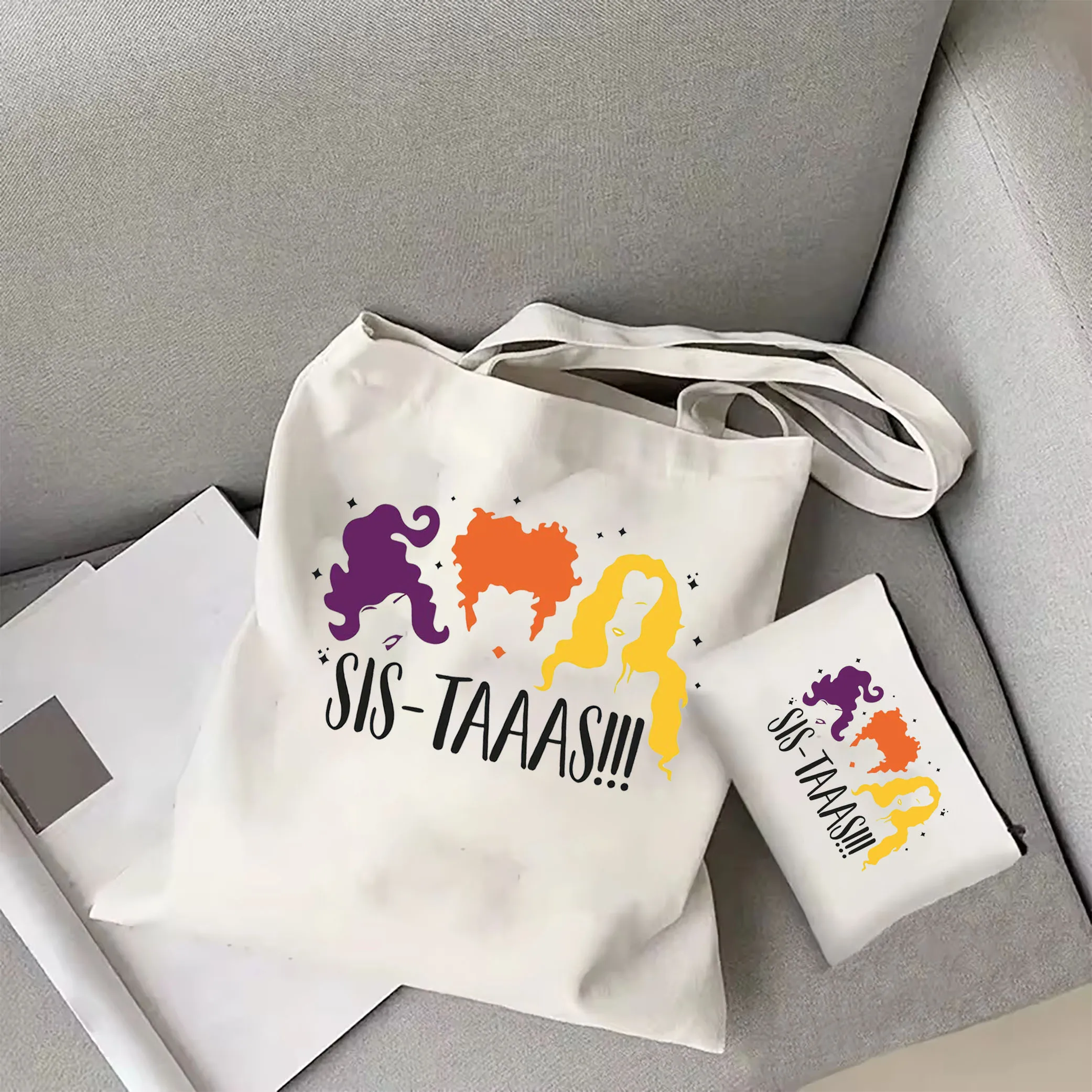Hocus Pocus Sistaaas printed tote bagHalloween canvas bag Sanderson Sisters tote bag Halloween Party women's fashion tote bag