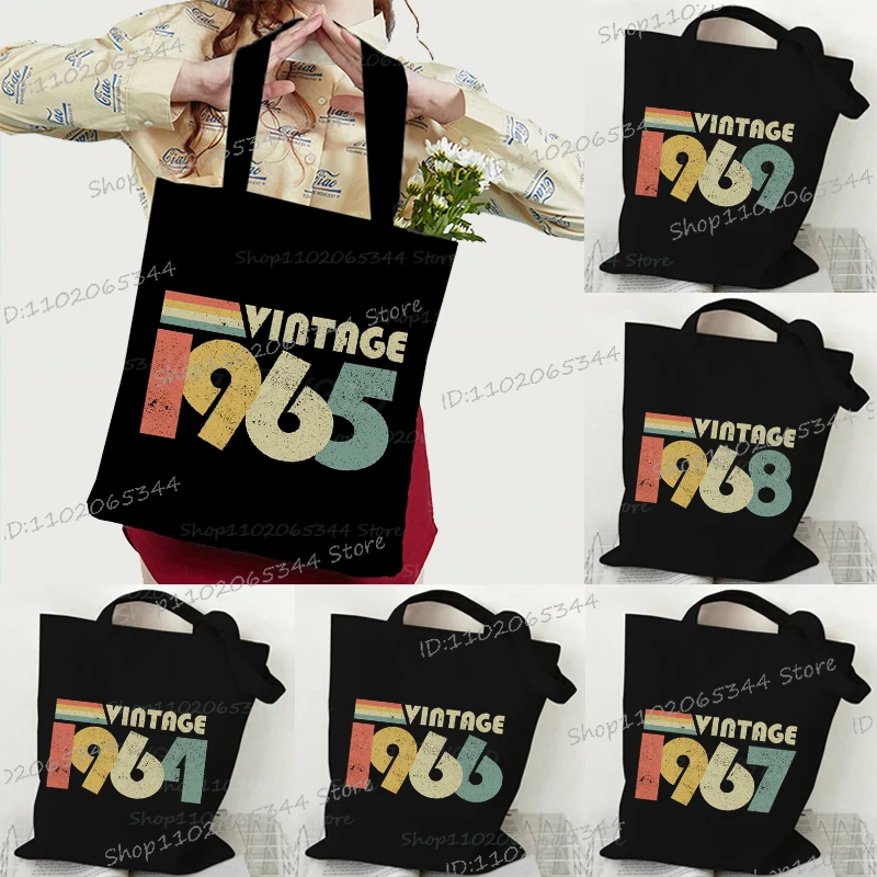 Harajuku Vintage 1965 Fashion Shoulder Bags Women Men Funny Birthday Year 1960 To 1969 Canvas Tote Bag Reusable Birthday Handbag