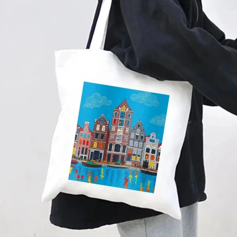 London Madrid Cairo Shoulder Bag Budapest Venice Sydney Watercolor Women's Canvas Handbag Handbag Environmental Shopping Bag