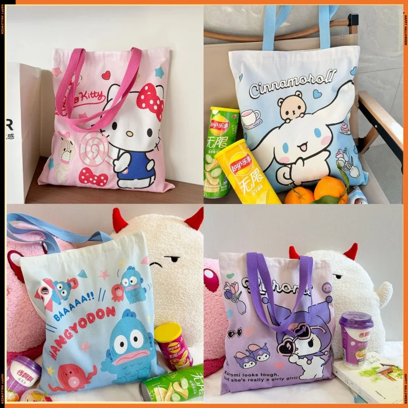 wholesale price Kawaii Sanrio Canvas Bag Kuromi Hello kitty Cinnamoroll Women's Shoulder Bags Casual Large Capacity Shopping Bag
