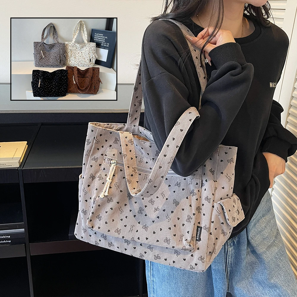 Corduroy Tote Bag Cute Tote Bags for Women Shoulder Bag with Inner Pocket for Work Beach Travel and Shopping