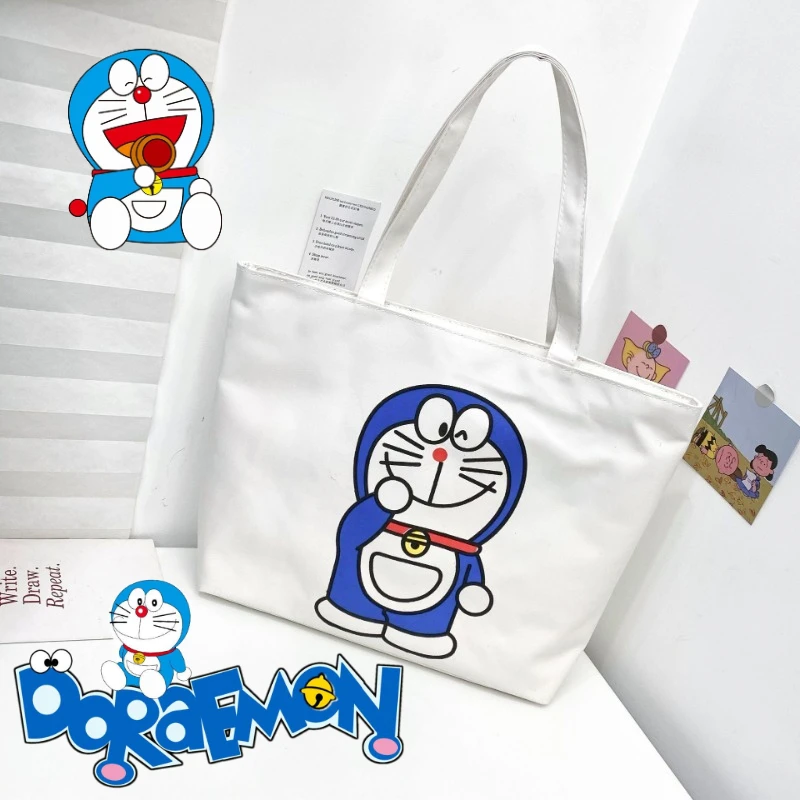 Doraemon Shoulder Canvas Bag Women Shopping Large Capacity Bag Girl Cartoon Anime Simple Commuter Handbags Student Load Book Bag