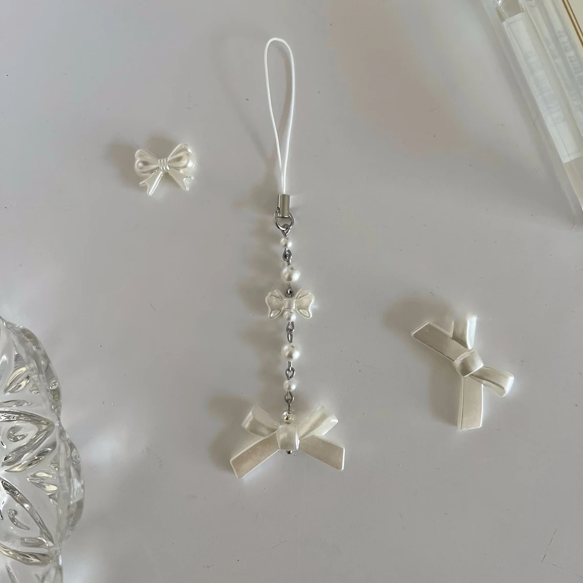 Handmade Coquette Phone Charm Pearl Dainty Bow Keychain | Simple Charms Aesthetic Gifts