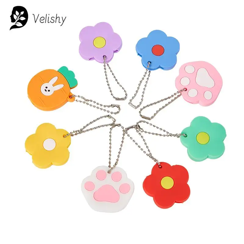 1PC Color Flower Cartoon Key Cover Cap Silicone Key Accessories Cute Key Holder Fashion Key Chain For Girl Women Trinket Gift