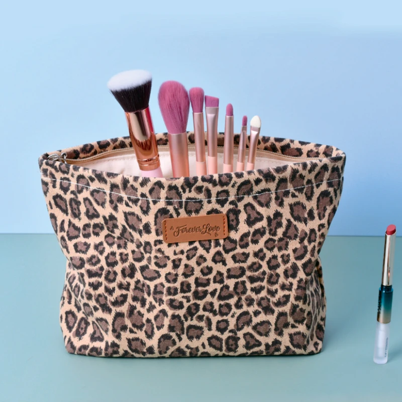 Leopard Print Large Makeup Bag - Stylish cute Toiletry Organizer handbag for women girls
