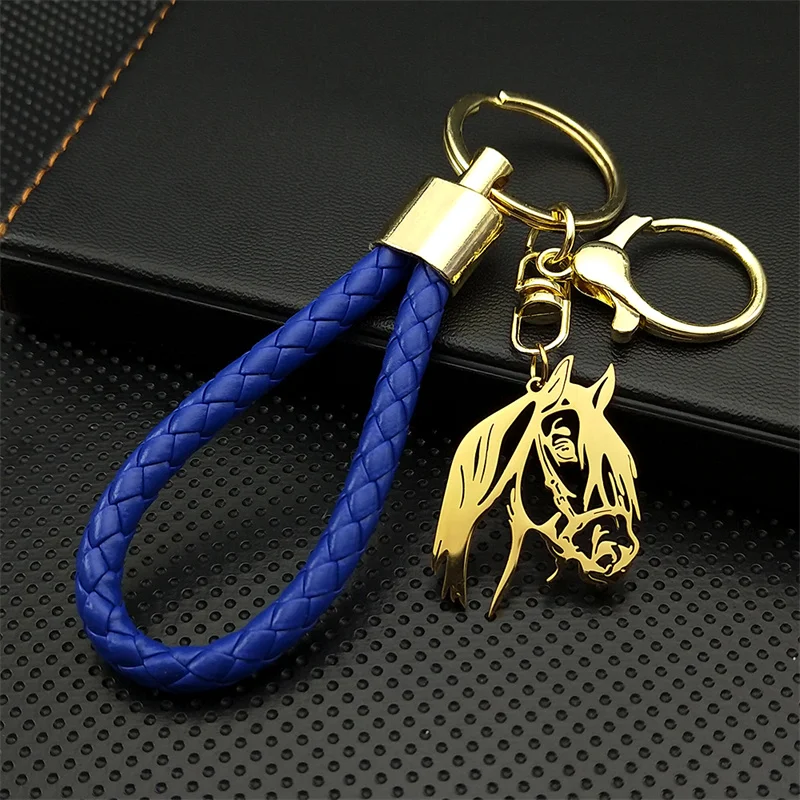 Fashion Horse Keychain for Women Men Blue Color Animal Horses Lover Key Ring Bag Accessories Gift Jewelry llaveros K6330S07