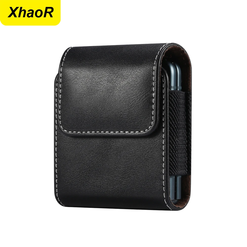 Leather Belt Clip Case Men Waist Bag For Samsung Galaxy Z Flip 5 4 3 5G OPPO VIVO Huawei P50 Pocket Holster Pouch Leather Cover