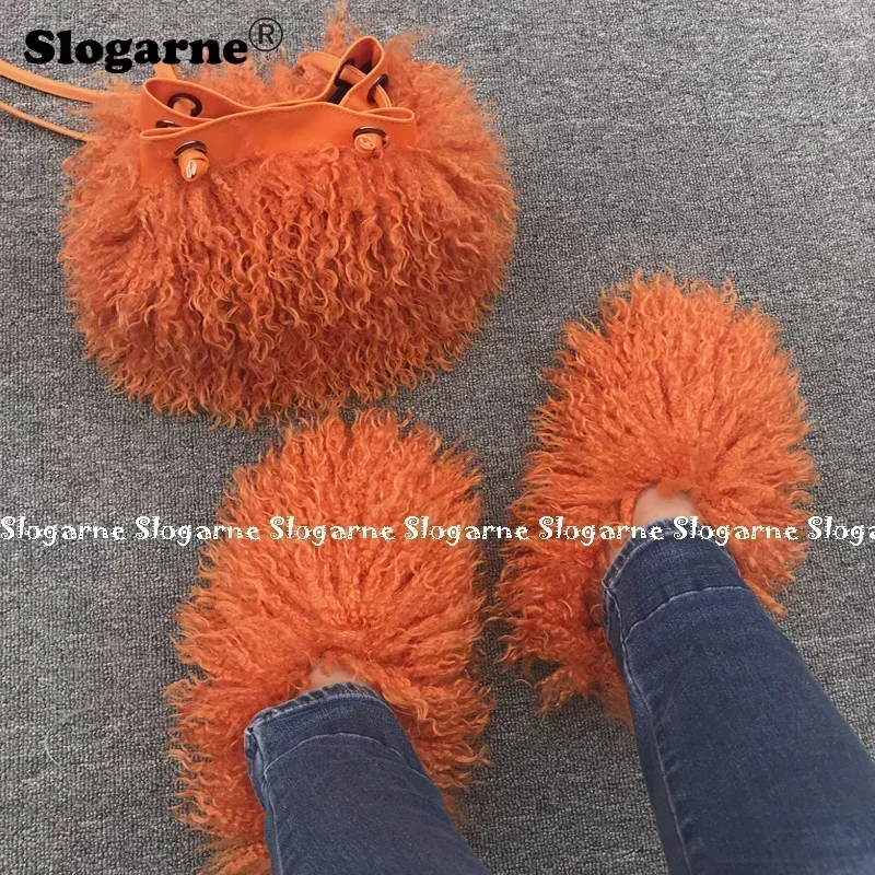 Women's Fashion Sets Fur Slippers Fur Handbags Woman Luxury Faux Fur Set Slides Furry Bag Purse Wallet Indoor Shoes Plus Size 49  Read more