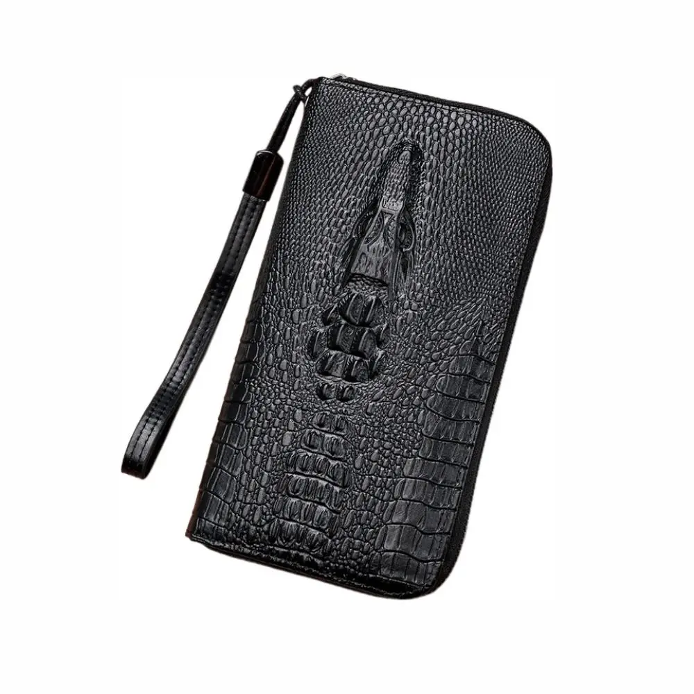 Luxury Long Wallet Multi-function Money Bag Card Holder Money Bag with Wrist Strap Alligator Pattern Coin Purse for Male