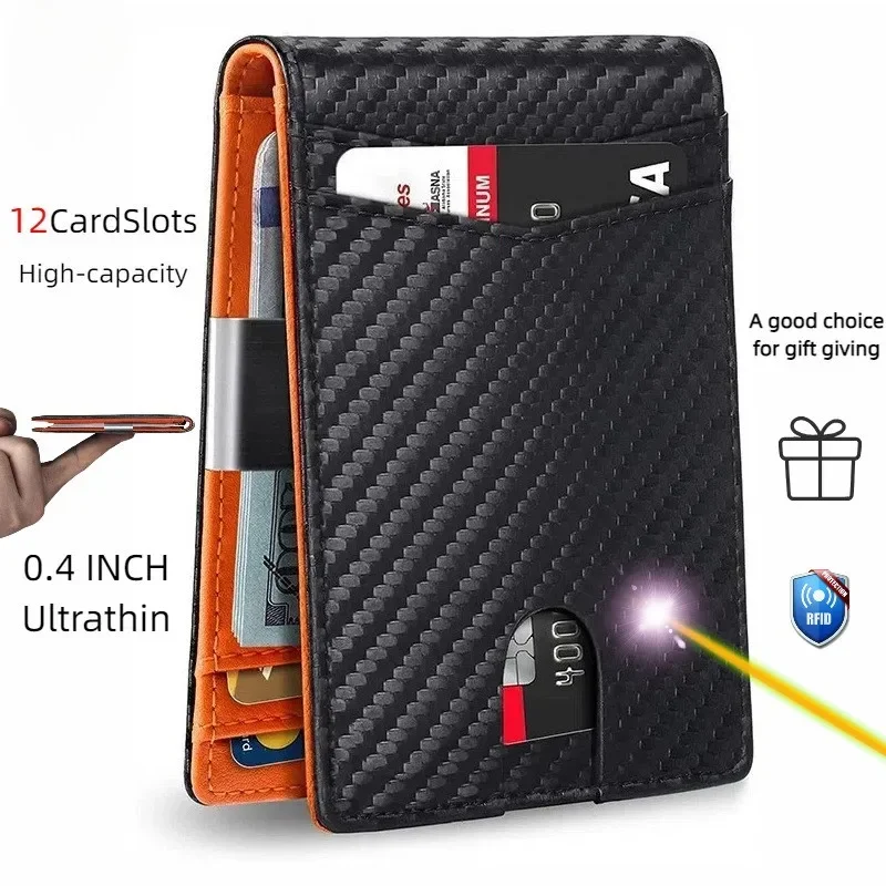 Rfid Microfiber Leather Men Wallets Short Leather Wallets Carbon Fiber Slim Card Holder Wallet Black Minimalist Wallet for Men  Read more