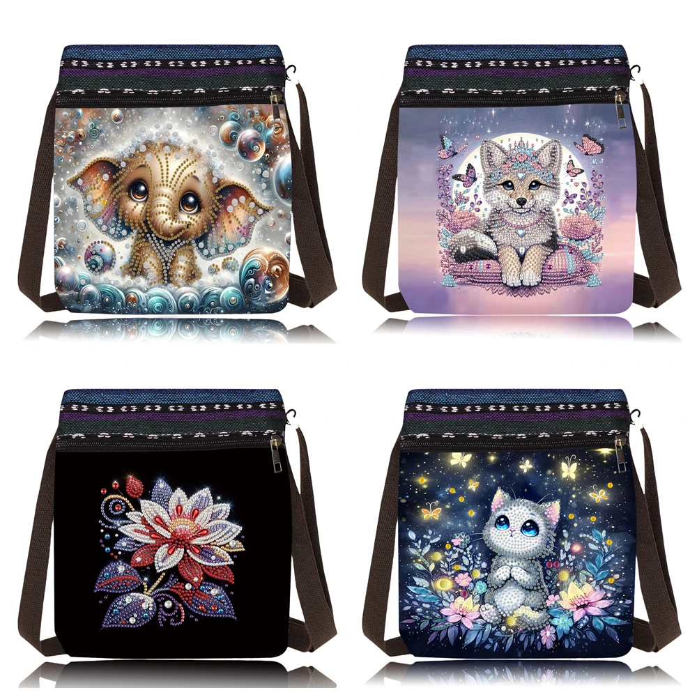 1pc/Set DIY Flowers Diamond Painting Purses Canvas Shoudler Handbag with Strap Animals Diamond Art Crossbody Bag for Women
