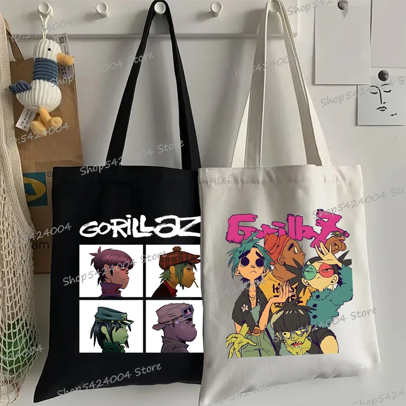 Music Band Gorillazs Women Men Handbag Punk Rock 90s Canvas Teen Shoulder Bag Gothic Hip Hop Anime Gorillaz Female Shopping Bag