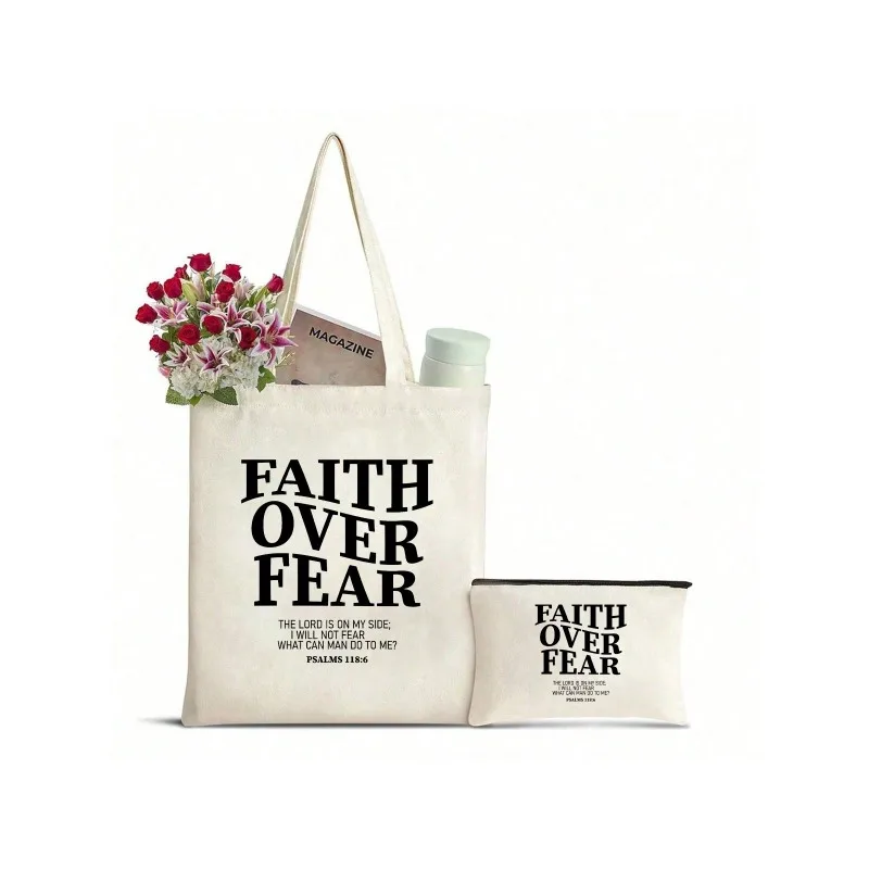 2pcs Large Capacity Canvas Bible Handbag Jesus Letter Printed Shoulder Skull Women's Casual Christian Shopping Bag Daily Gifts  Read more